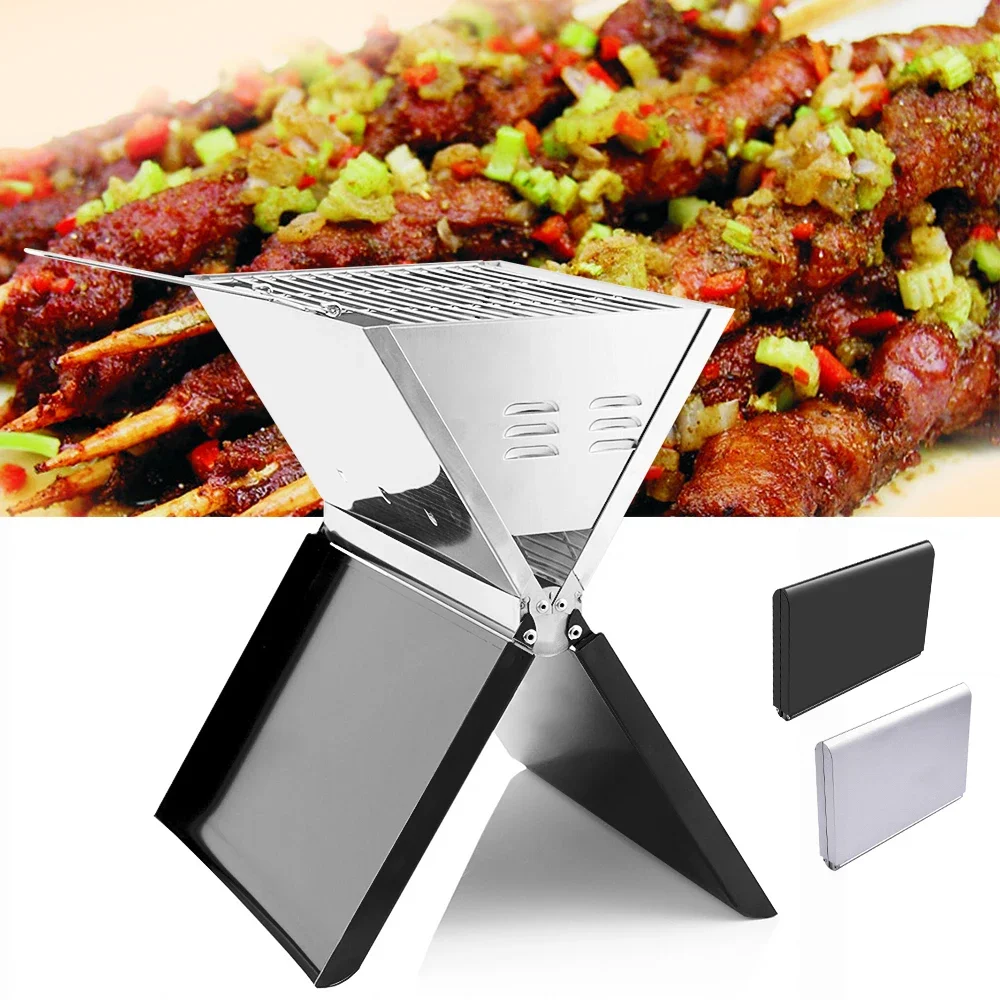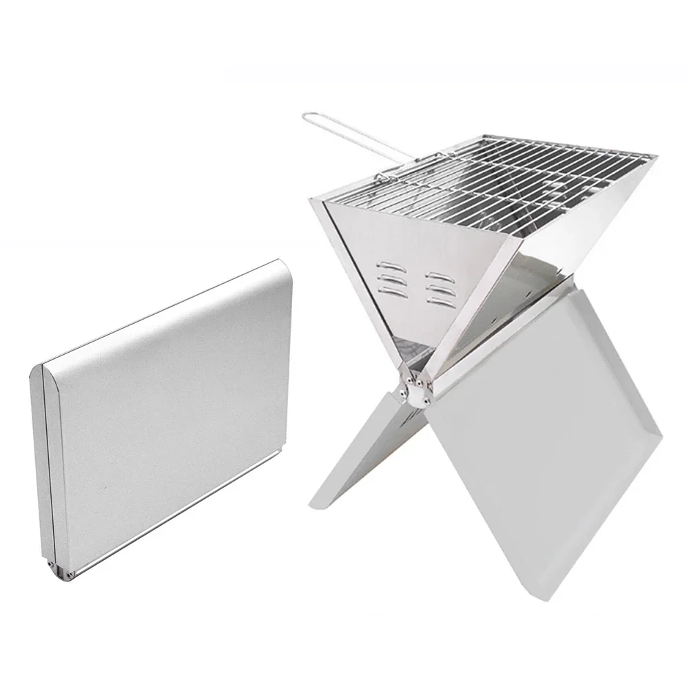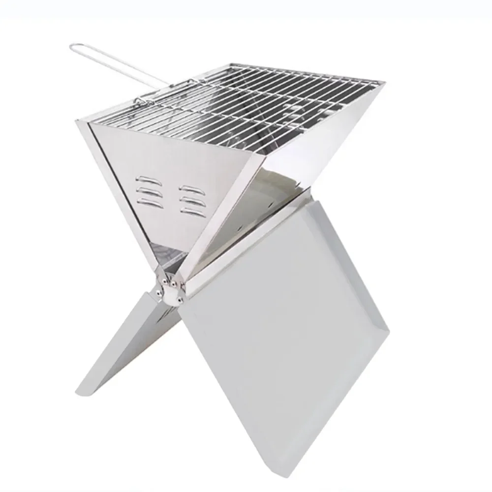 Ce barbecue pliant en acier inoxydable se déploie en quelques secondes. Son format compact plié permet un transport simple tout en offrant une vraie surface de cuisson stable au charbon.