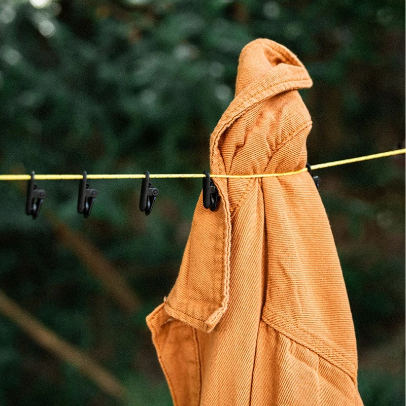 Les clips en POM et les éléments en alliage d’aluminium permettent d’accrocher rapidement vêtements, serviettes ou petits équipements.