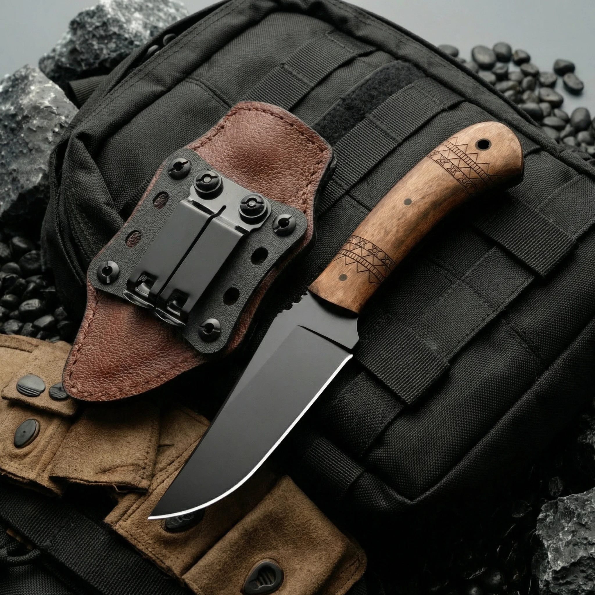 En pleine nature, disposer d’un couteau fiable et maniable est crucial pour l’organisation de votre campement. Ce modèle HUANGFU a été spécifiquement sélectionné pour les passionnés de plein air qui recherchent un équilibre entre esthétique traditionnelle et performance moderne. Sa structure fixe garantit une solidité à toute épreuve, sans les faiblesses mécaniques des modèles pliants.