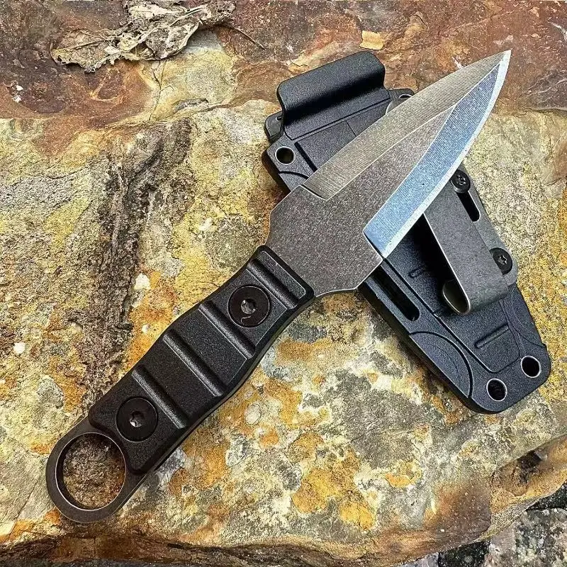 Ce couteau compact à lame fixe est conçu pour offrir solidité et praticité lors des activités en plein air.