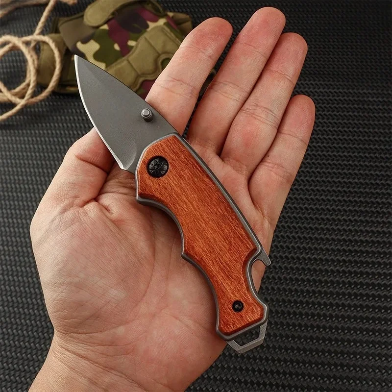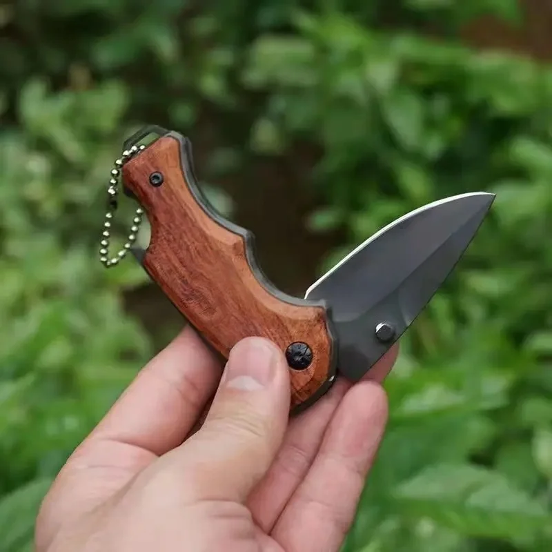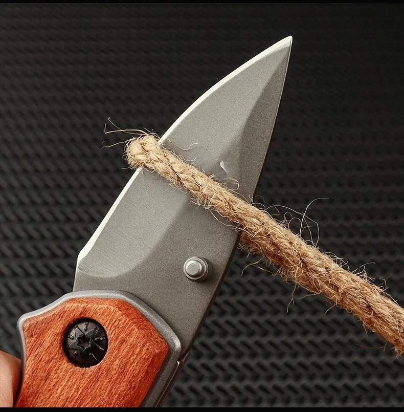 Ce couteau pliant se distingue par l’utilisation de matériaux nobles. Son manche en bois massif n’est pas seulement esthétique ; il offre une ergonomie supérieure qui s’adapte naturellement à la paume de la main. Associé à une structure en acier inoxydable 5Cr13Mov, il devient un compagnon fiable pour toutes vos aventures, du bivouac à l’usage quotidien.