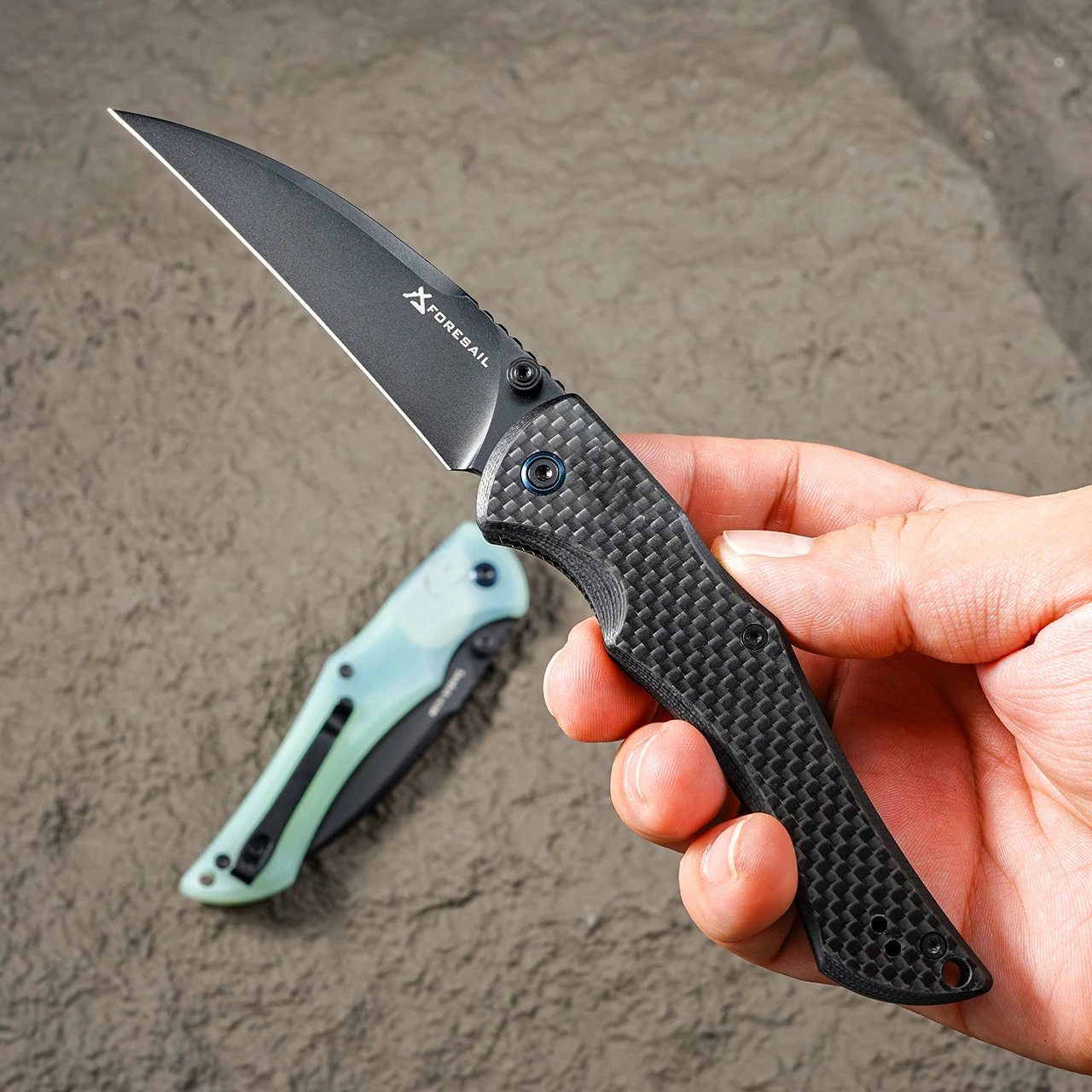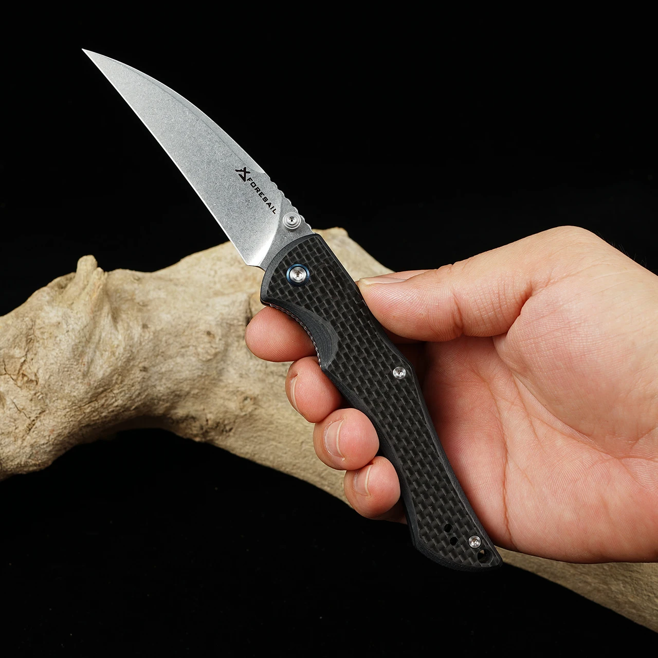 Poignée en fibre de carbone, Manche naturel G10, Lame Stone Wash