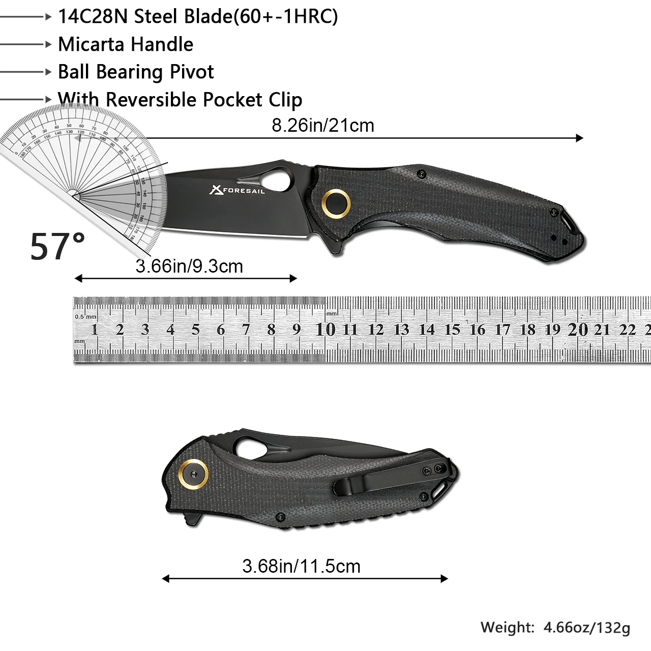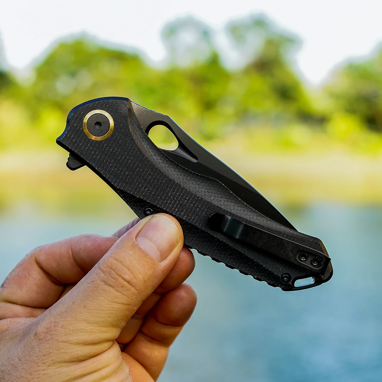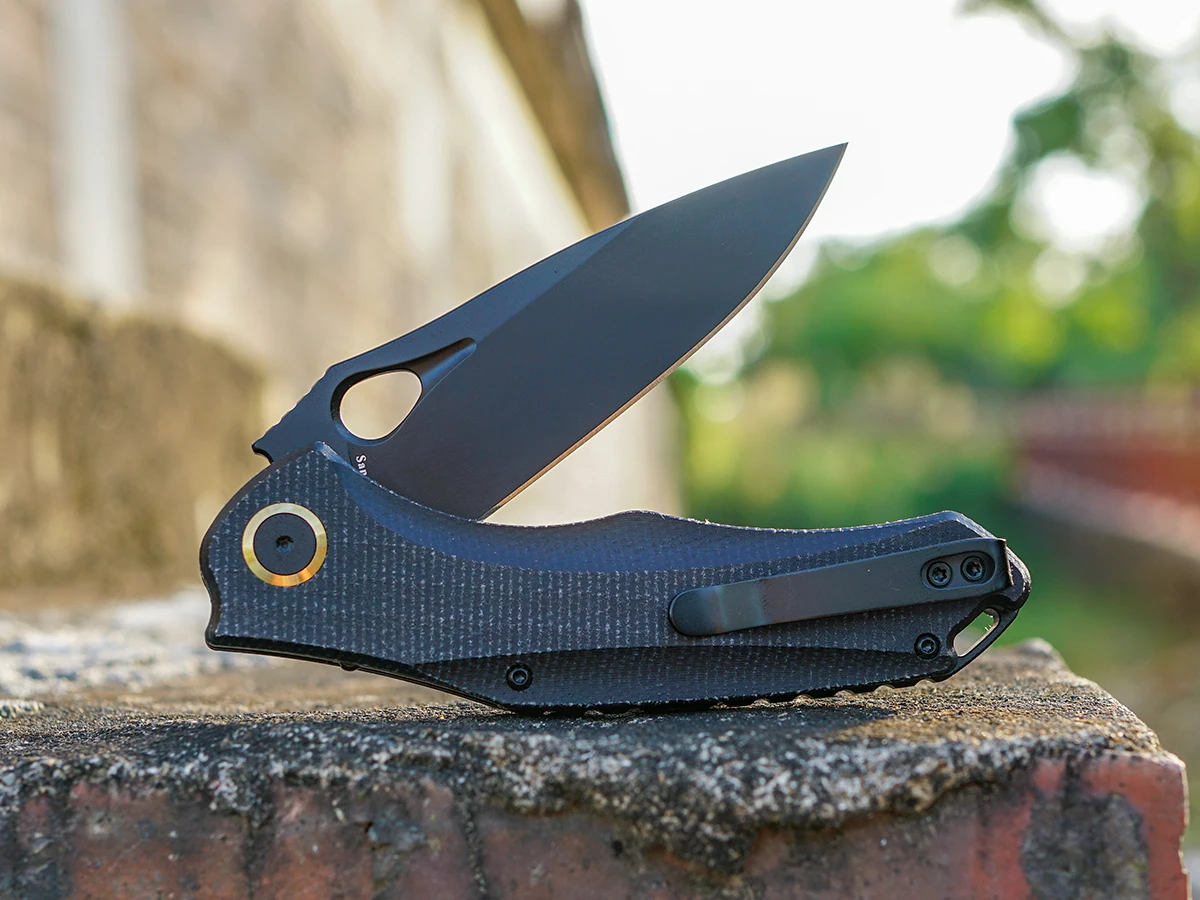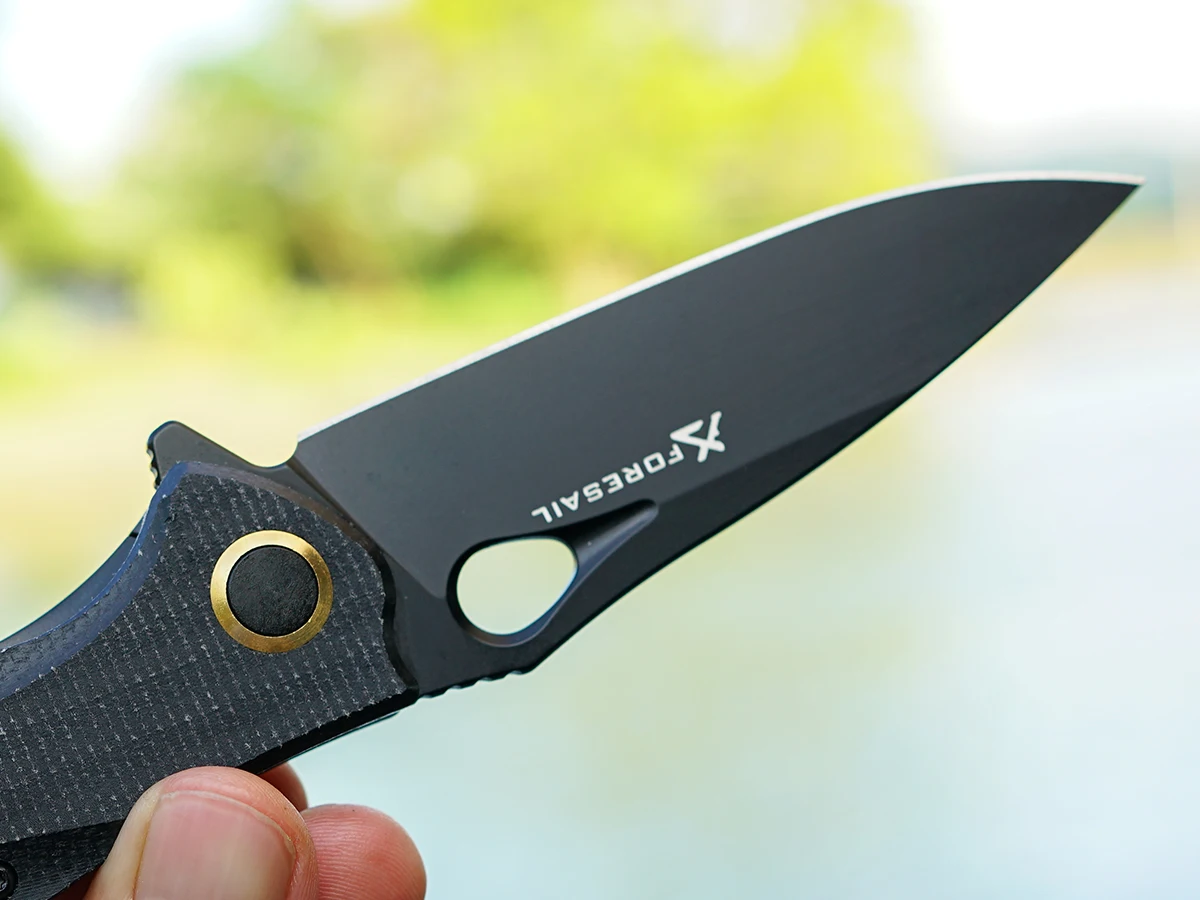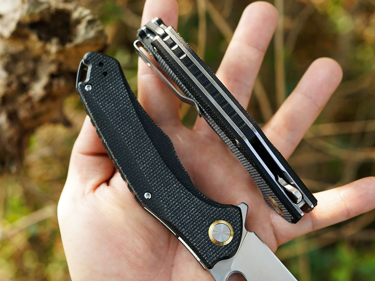 Ce couteau pliant est équipé d’une lame en acier 14C28N, reconnu pour sa résistance à la corrosion et sa tenue de coupe durable.