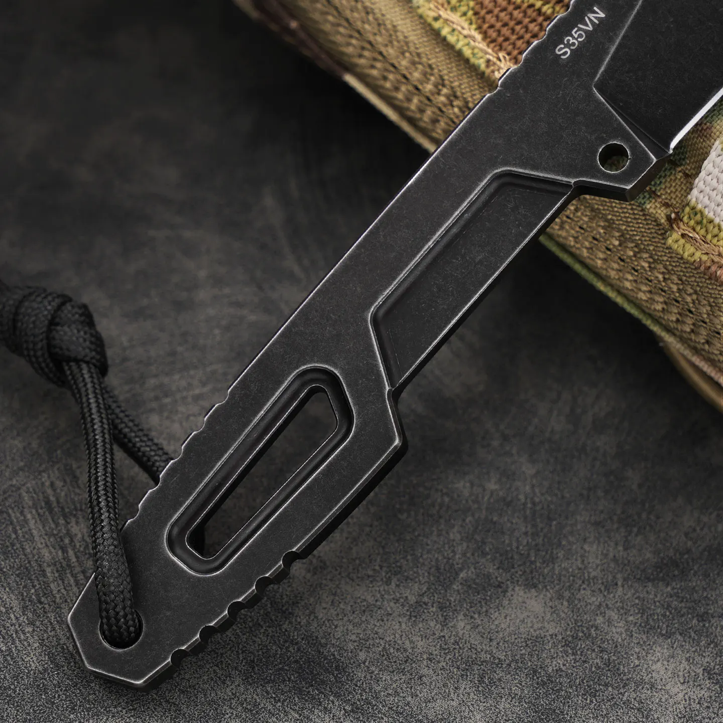 Ce couteau miniature à lame fixe est moulé en une seule pièce d’acier inoxydable, garantissant rigidité et durabilité dans un format très compact.