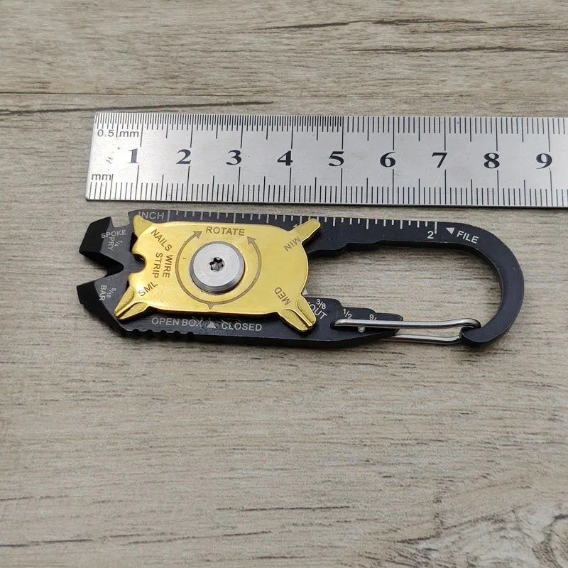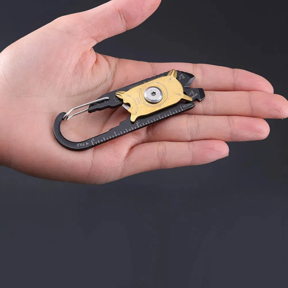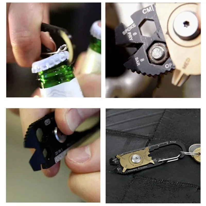Ce porte-clés EDC 20-en-1 en acier inoxydable regroupe clés, tournevis, coupe-fil, décapsuleur et outils de précision dans un format compact et léger à accrocher partout.