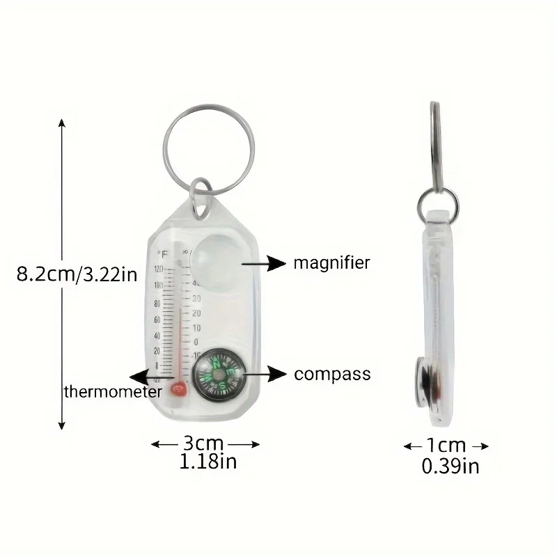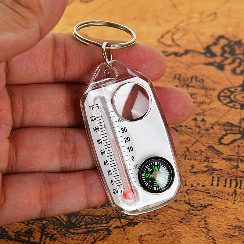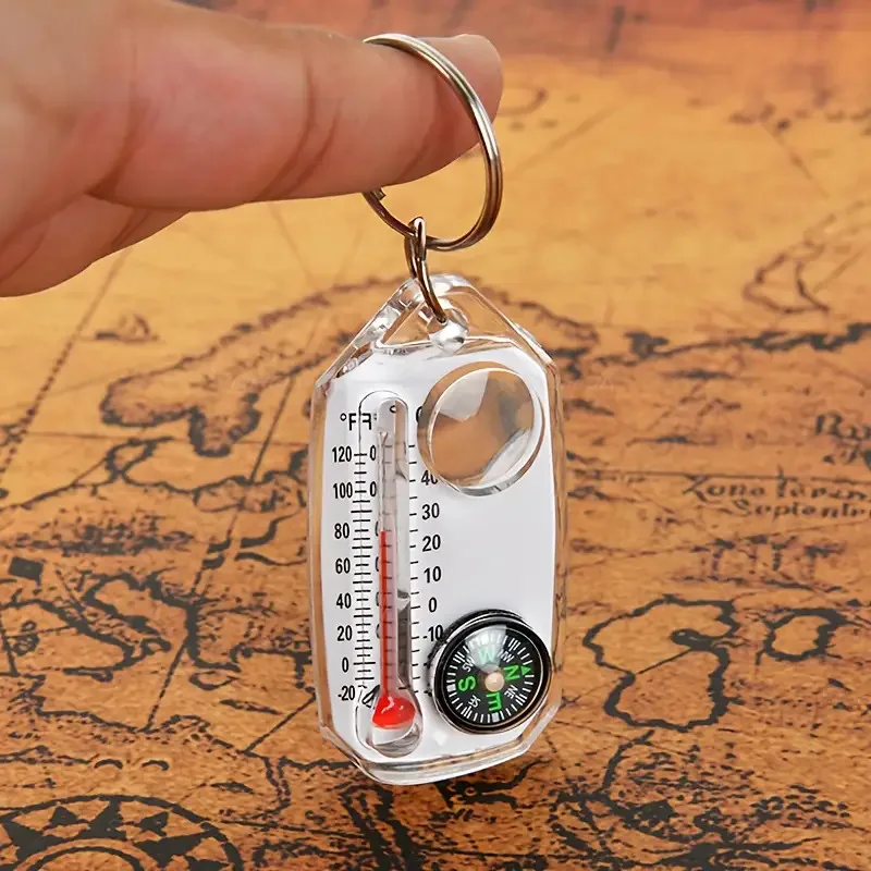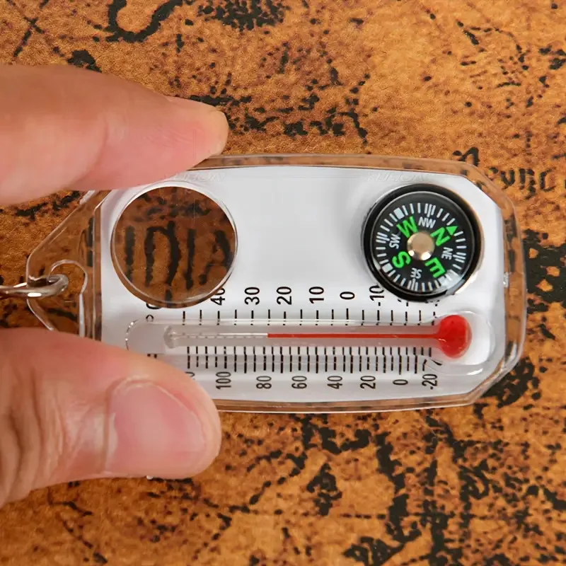 Ce porte-clés multifonction 3 en 1 regroupe une boussole, un thermomètre et une loupe dans un format ultra compact. Léger et facile à accrocher à un sac ou à un trousseau, il reste toujours disponible lors de vos activités outdoor.