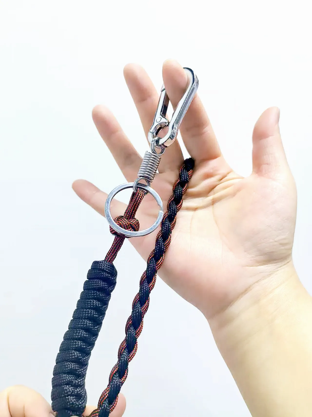 Ce porte-clés de sécurité intègre une pointe brise-verre en acier inoxydable reliée à une corde tressée solide, offrant à la fois résistance et prise en main rapide.