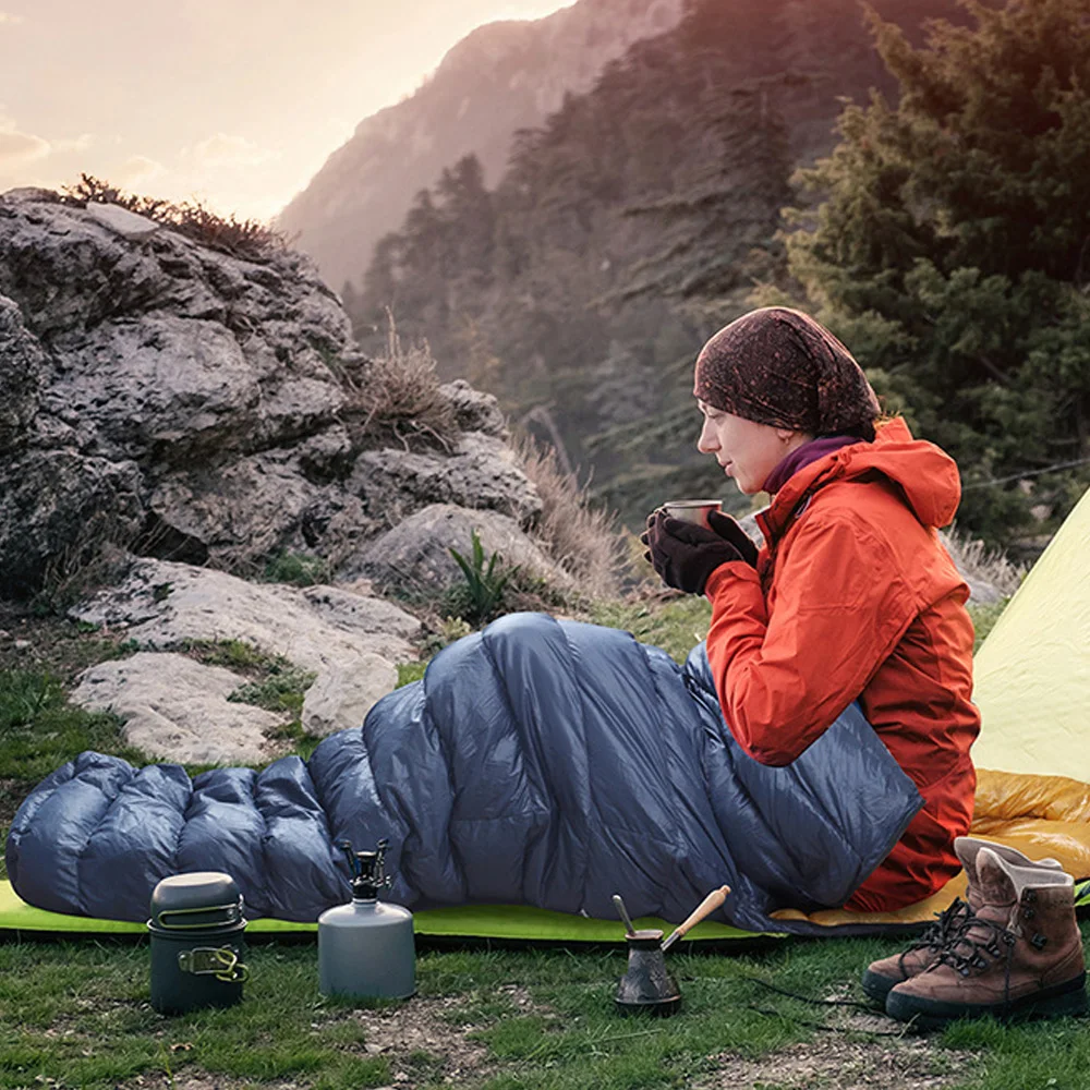 Ce sac de couchage en duvet pour adulte combine isolation thermique et poids réduit.