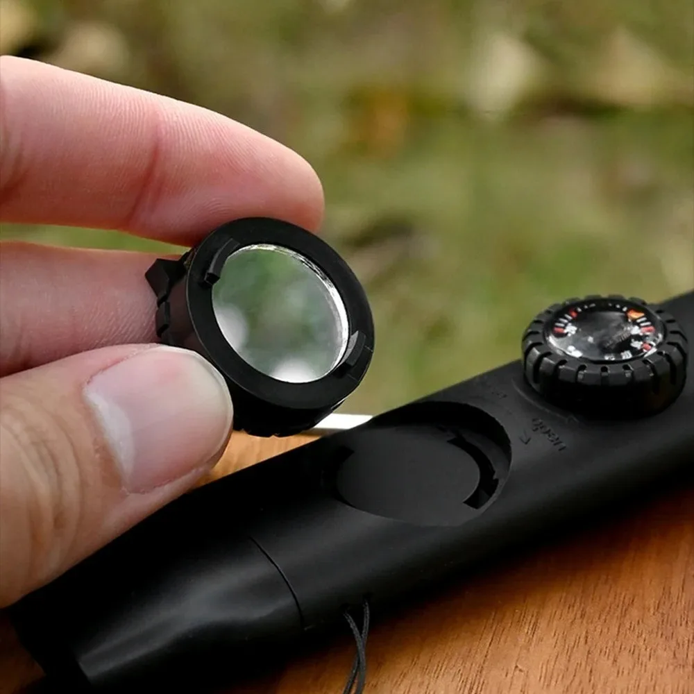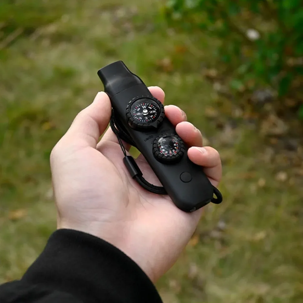 Ce sifflet de survie multifonction regroupe plusieurs outils indispensables dans un format compact et léger : sifflet d’alerte, boussole, thermomètre et lampe intégrée. Sa construction robuste permet une utilisation fiable dans des conditions outdoor exigeantes.