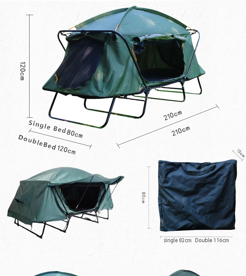 Tente-Lit de Camp Double : Surélevée, Pliable, Confort 2P