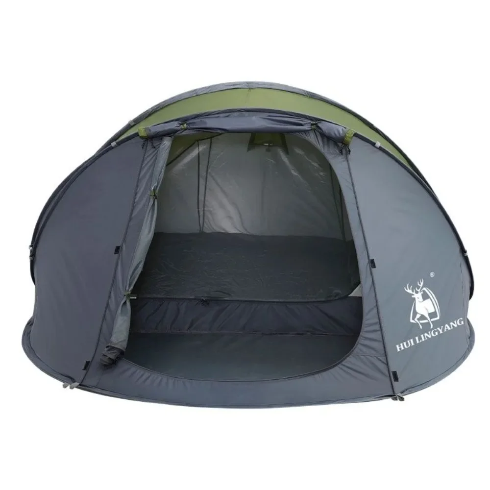 Cette tente pop-up en polyester 190T imperméable, avec sol Oxford 210D étanche et fenêtres en maille B3, se déploie automatiquement et offre un espace ventilé, sec et protégé pour toute la famille.